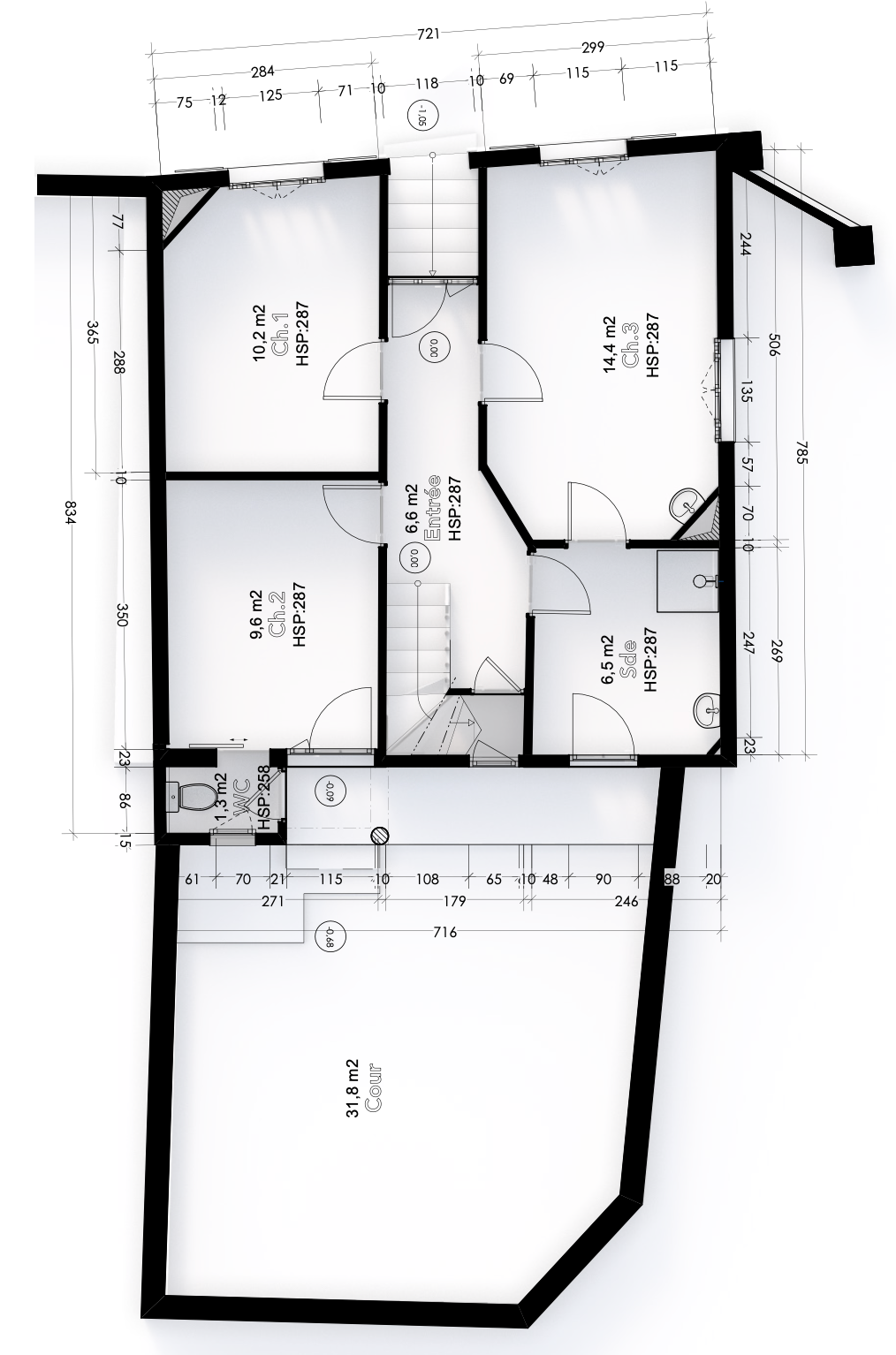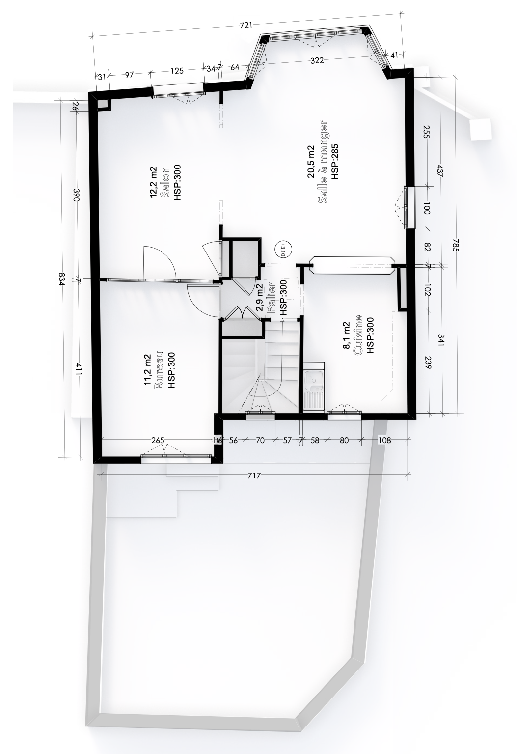 Relevé, mise en plan et mise en volume 3D d'une maison d'habitation