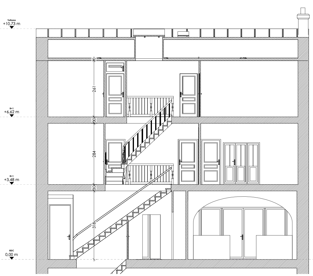 Relevé, mise en plan et mise en volume 3D d'une maison d'habitation